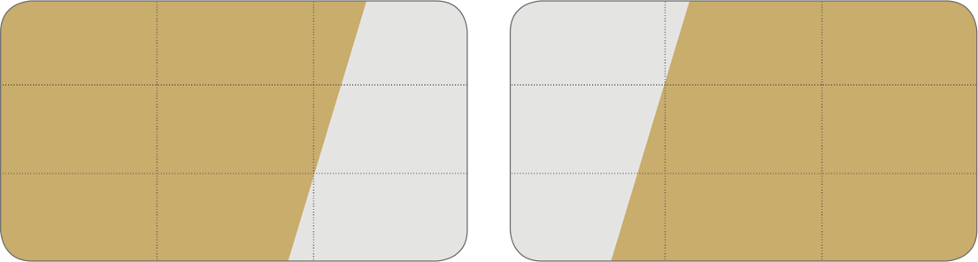 면적 비율을 구성할 때 수직이나 수평만 고집할 게 아니라 대각선으로도 응용해볼 수 있습니다. 1:2 혹은 2:1 비율을 유지한 채 다음과 같이 대각선으로 레이아웃을 변형해 봐도 좋습니다.