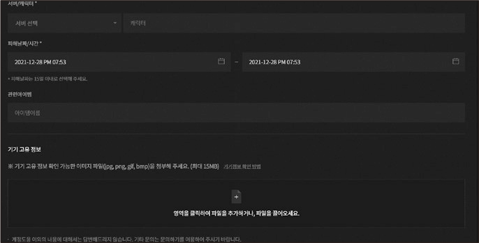 6. 서버/캐릭터/시간/아이템 등 작성(모바일 게임이라면 기기정보 추가)
