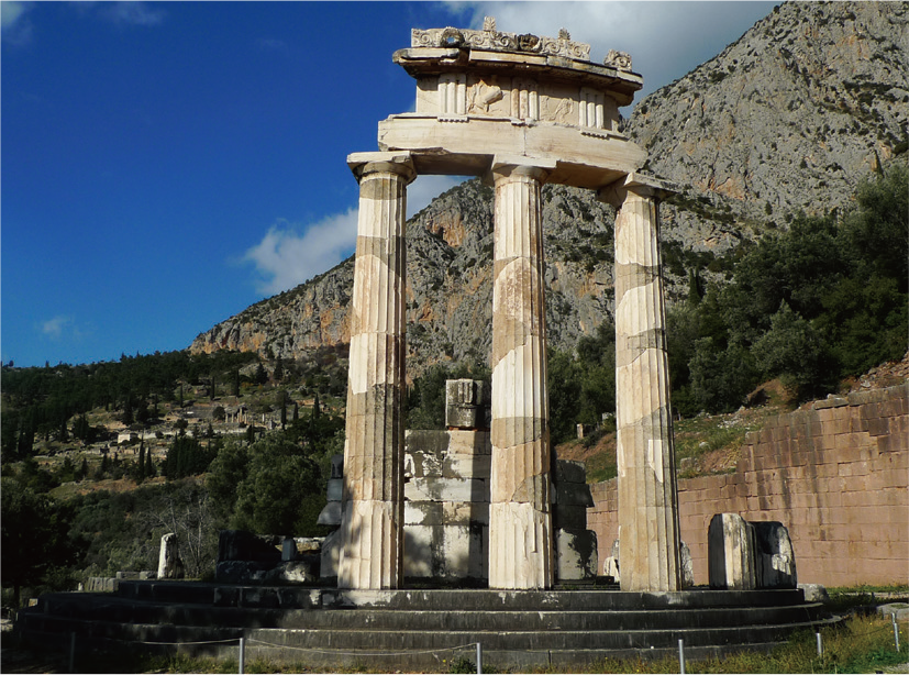 B.C. 6세기 무렵 아폴론의 신탁을 들을 수 있는 델피신전(sanctuary of Delphi)은 그리스뿐만 아니라 그 주변 국가들에게도 성스러운 장소로 여겨졌던 곳이다. 그들은 신탁을 얻기 위해서 이곳을 방문하였고 신탁을 얻기 위한 제물을 바치기 위해 그들의 보물창고를 이곳에 건립하였다. 고대 그리스인들은 델포이를 이름하여 ‘세상의 배꼽(navel of the world)’이라 부르고 아폴론신전 가운데 옴팔로스(omphalos)라는 돌을 묻었다.